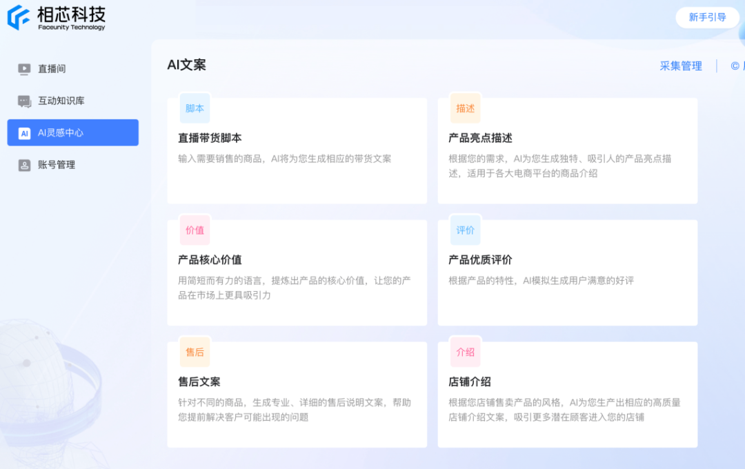 在內(nèi)容運營環(huán)節(jié),讓商家實現(xiàn)“內(nèi)容生產(chǎn)自由”:隨著電商運營邏輯從“流量為王”轉(zhuǎn)變?yōu)椤皟?nèi)容為王”,內(nèi)容就成為了商家們比拼的關(guān)鍵。但市面上成熟優(yōu)質(zhì)的電商內(nèi)容運營人才稀缺,不少商家面臨內(nèi)容運營人才難招聘、難培養(yǎng),直播內(nèi)容生產(chǎn)難等痛點。為此,相芯科技數(shù)字人直播平臺推出AIGC功能,商家只需輸入關(guān)鍵詞,就能一鍵生成直播腳本、產(chǎn)品亮點描述、店鋪介紹、售后文案等內(nèi)容,降低商家對內(nèi)容運營人才的依賴,輕松產(chǎn)出高質(zhì)量內(nèi)容。而且,平臺還支持商家一鍵制作營銷短視頻,讓商家實現(xiàn)“內(nèi)容生產(chǎn)自由”。