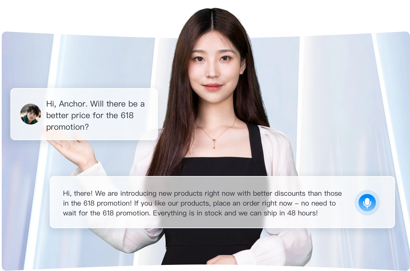 The industry's first large language model-driven digital streaming product, for digital anchors capable of offering professional shopping assistance, responding accurately, and interacting effectively!